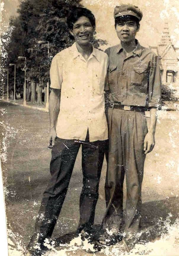 “Ngực đeo máy ảnh, tay cầm súng tôi tò mò lần đi tìm đến nơi có tiếng đàn. Ồ, một khung cảnh thật thú vị. Trong khu vườn bỏ hoang có chiếc piano nhà ai để đó. Một người lính Campuchia đang say sưa chơi đàn, súng gác bên cạnh. Quanh anh mấy người dân, chắc từ đâu đó trở về, vẫn mang trên người bộ quần áo đen ‘công xã’ đang chăm chú nghe…”
