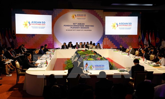 Toàn cảnh ngày họp đầu tiên của Hội nghị Bộ trưởng Ngoại giao ASEAN lần thứ 50 ở Manila, Philippines ngày 5/8. (Nguồn: EPA/TTXVN)