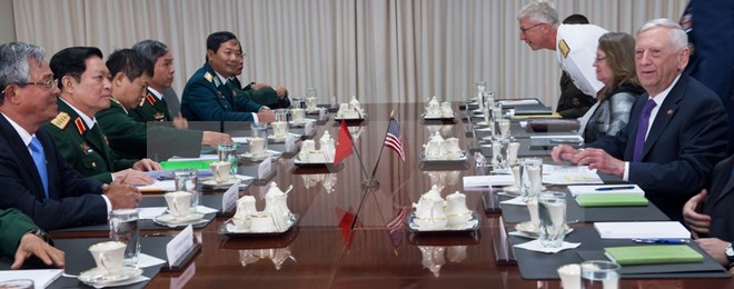 Về phần mình, Bộ trưởng Quốc phòng Hoa Kỳ James Mattis đánh giá cao vai trò, vị thế của Việt Nam trong khu vực, cũng như nỗ lực hợp tác có hiệu quả của Việt Nam trong việc tìm kiếm hài cốt người Mỹ mất tích trong chiến tranh (MIA). Bộ trưởng James Mattis cam kết sẽ tiếp tục hợp tác trong việc tìm kiếm thông tin bộ đội Việt Nam mất tích trong chiến tranh cũng như hỗ trợ cho việc tẩy độc dioxin tại sân bay Biên Hòa.