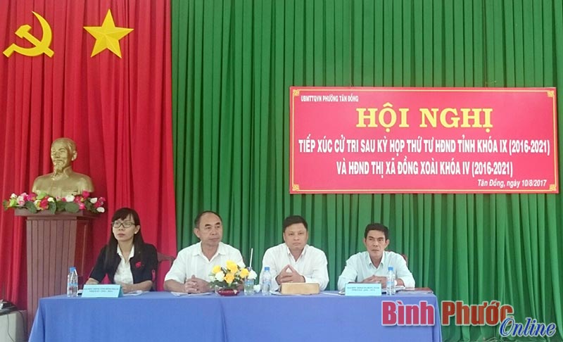 Cử tri là cán bộ khu phố 2 và khu phố 3 đề nghị cần xem lại bộ thu thuế sử dụng đất phi nông nghiệp năm 2017 đang có nhiều bất cập, sai về vị trí, diện tích và mức giá từng vị trí, gây khó khăn cho người đi thu. Lãnh đạo phường Tân Đồng cũng đồng tình với ý kiến này và hứa sẽ đề nghị cán bộ Chi cục Thuế thị xã làm việc trực tiếp với cán bộ thu thuế các khu dân cư để giải quyết những vướng mắc nêu trên.