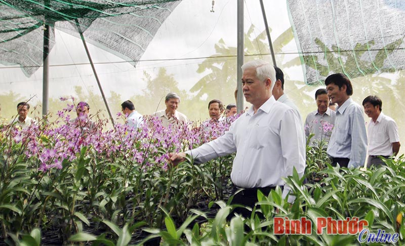 Đồng chí Bí thư Tỉnh ủy Nguyễn Văn Lợi và đoàn công tác thăm vườn hoa lan tại Khu nông nghiệp ứng dụng công nghệ cao