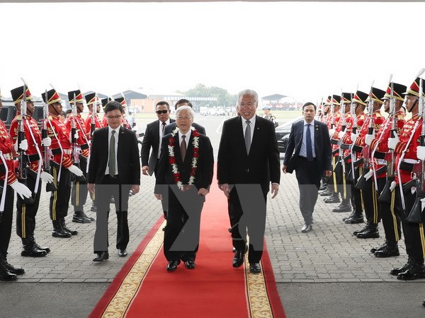Lễ đón Tổng Bí thư Nguyễn Phú Trọng tại sân bay Quốc tế Soekarno-Hatta