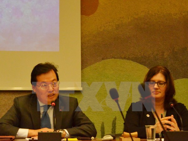 Đại sứ Dương Chí Dũng, Trưởng Phái đoàn Việt Nam tại Geneva phát biểu tại hội thảo