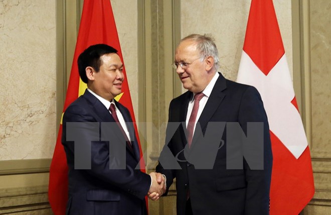 Nhằm đưa hợp tác kinh tế hai bên phát triển thực chất, hiệu quả, Phó Thủ tướng Vương Đình Huệ và Bộ trưởng Johann Schneider-Amman nhất trí đẩy nhanh tiến độ đàm phán Hiệp định Thương mại tự do giữa Việt Nam với EFTA (gồm Thụy Sĩ, Na Uy, Iceland và Liechtenstein); tăng cường các hoạt động xúc tiến thương mại-đầu tư, tạo điều kiện thuận lợi cho doanh nghiệp hai nước hợp tác đầu tư, kinh doanh, nhất là trong các lĩnh vực hai bên có nhiều tiềm năng như tài chính-ngân hàng, bảo hiểm, dược phẩm, nông nghiệp công nghệ cao, dịch vụ sân bay, du lịch, nhà hàng-khách sạn.
