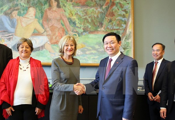 Tại cuộc làm việc với Chủ nhiệm Ủy ban Kinh tế và Thuế Hạ viện Thụy Sĩ, bà Susanne Leutenegger Oberholzer, Phó Thủ tướng Vương Đình Huệ cảm ơn những tình cảm nồng ấm, sự ủng hộ và giúp đỡ quý báu của nhân dân Thụy Sĩ và của cá nhân bà Susanne Leutenegger Oberholzer dành cho Việt Nam; cảm ơn Quốc hội, Chính phủ và nhân dân Thụy Sĩ tiếp tục coi Việt Nam là đối tác ưu tiên trong chính sách hợp tác phát triển; đánh giá các dự án do Thụy Sĩ tài trợ đã và đang được triển khai hiệu quả, góp phần quan trọng vào công cuộc phát triển kinh tế-xã hội và hội nhập quốc tế của Việt Nam.
