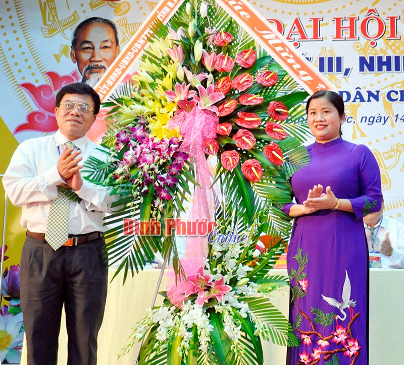 Và tặng lẵng hoa của Tỉnh ủy, HĐND, UBND, UBMTTQVN tỉnh chúc mừng đại hội