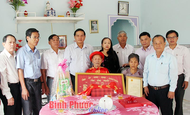 Đoàn đến thăm, tặng quà, chúc thọ 5 cụ, trong đó có 2 cụ trên 100 tuổi (cụ Nguyễn Thị Tuế, 102 tuổi và cụ Nguyễn Thị Chát, 101 tuổi), là Mẹ Việt Nam anh hùng ở xã Long Hưng và 3 cụ tròn 100 tuổi ở xã Bù Nho là cụ Bùi Viết Tạo, Nguyễn Thị Nga, Lương Thị Lụa. Những cụ trên 100 tuổi, đoàn đến thăm, chúc thọ và tặng phần quà trị giá 1 triệu đồng, trong đó có 500 ngàn đồng tiền mặt. Các cụ tròn 100 tuổi, đoàn đến thăm, tặng bức khánh, thiệp chúc thọ của Chủ tịch nước, tấm lụa và phần quà trị giá 1 triệu đồng, trong đó có 500 ngàn đồng tiền mặt.