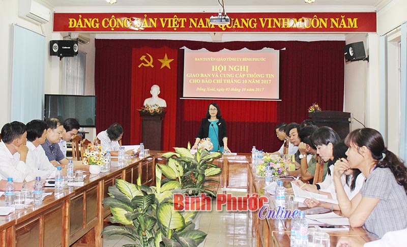 Định hướng tuyên truyền tháng 10-2017, Ban Tuyên giáo Tỉnh ủy đề ra 10 nhiệm vụ tuyên truyền chính và Sở Thông tin - Truyền thông 5 vấn đề trọng tâm như: tiếp tục tuyên truyền Nghị quyết Trung ương 4 (khóa XII) về xây dựng đảng; tiếp tục thực hiện chuyên mục “Người Bình Phước nói lời hay, làm việc tốt”; công tác phòng, chống tham nhũng, lãng phí; cần thông tin một cách chính xác và có định hướng dư luận xã hội trước các vấn đề nổi cộm, tránh đưa thông tin một chiều...