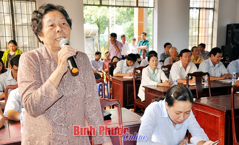 * Tại thị xã Phước Long, cử tri kiến nghị 13 vấn đề. Đó là, khi thu hồi đất nhằm mục đích quy hoạch, phát triển cần xác định rõ nguồn gốc để có chính sách hỗ trợ, đền bù, tái định cư... thỏa đáng; làm rõ mục đích quy hoạch, sử dụng diện tích đất công (sân vận động phường Sơn Giang) làm nơi sinh hoạt cộng đồng, xây dựng siêu thị hay trạm trung chuyển xe container; có biện pháp giúp nông dân chăm sóc, khôi phục lại vườn điều bị sâu bệnh gây hại...