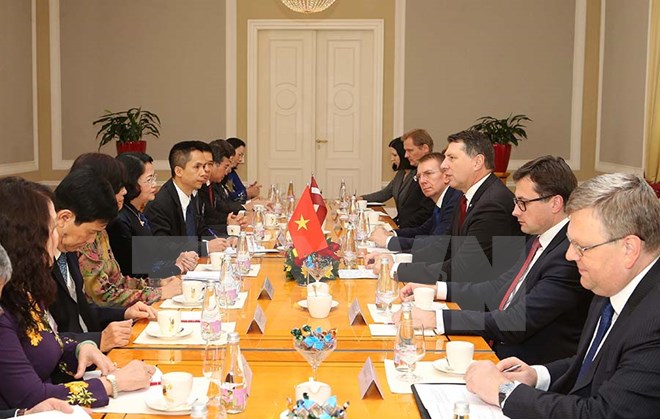 Tại cuộc gặp, Phó Chủ tịch nước Đặng Thị Ngọc Thịnh đánh giá cao những bước phát triển tích cực trong quan hệ hữu nghị truyền thống và hợp tác nhiều mặt giữa Việt Nam và Latvia thời gian qua, nhất là hợp tác kinh tế-thương mại. Việt Nam đã trở thành bạn hàng thương mại lớn nhất của Latvia tại Đông Nam Á với kim ngạch hai chiều năm 2016 đạt 161 triệu USD, tăng 10% so với năm 2015 và tăng 10 lần kể từ năm 2010; 9 tháng đầu năm 2017, kim ngạch hai chiều cũng đã đạt 126 triệu USD, tăng 10% so với cùng kỳ năm ngoái.