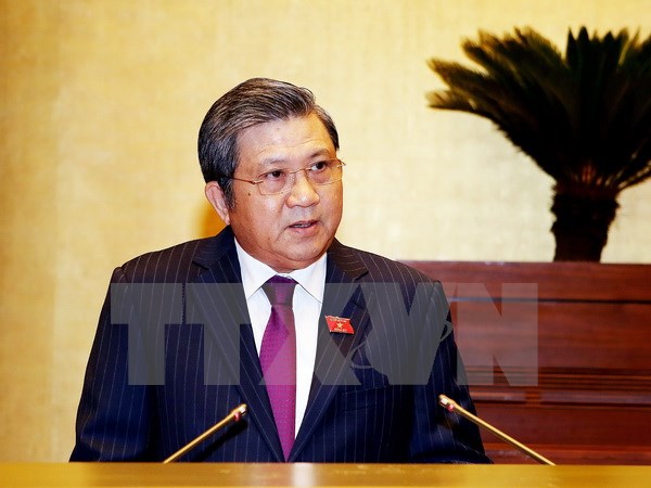 Chủ nhiệm Ủy ban Đối ngoại của Quốc hội Nguyễn Văn Giàu trình bày Báo cáo thẩm tra dự án Luật sửa đổi bổ sung một số điều của Luật Cơ quan đại diện Việt Nam ở nước ngoài