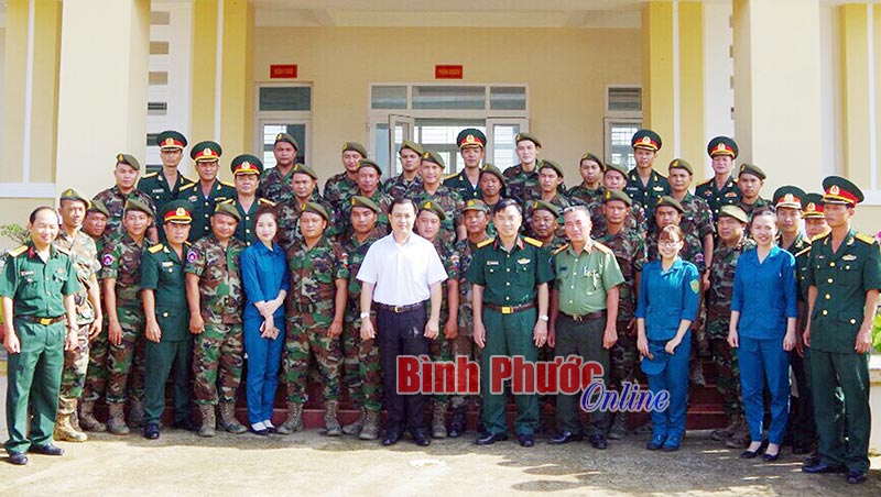 Đoàn đại biểu quân sự tỉnh Kratie, Vương quốc Campuchia thăm Ban chỉ huy Quân sự huyện Phú Riềng