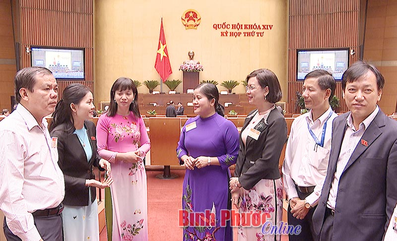 Các đại biểu Quốc hội và đại biểu HĐND tỉnh trao đổi bên lề phiên thảo luận