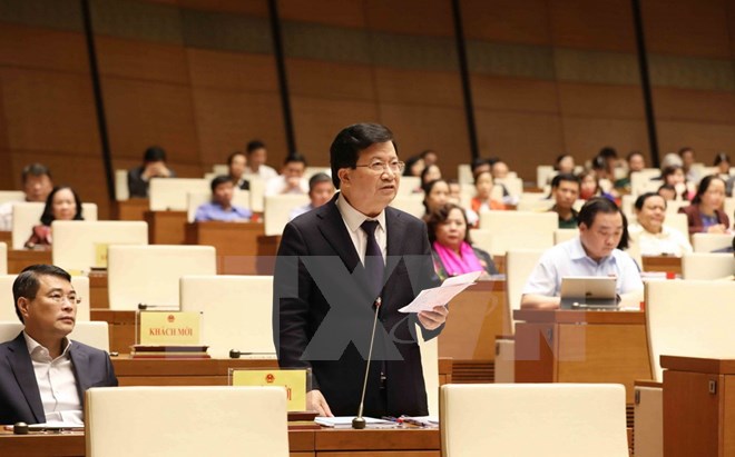 Phó Thủ tướng Trịnh Đình Dũng tiếp thu, giải trình những vấn đề đại biểu Quốc hội nêu. (Ảnh: Phương Hoa/TTXVN)