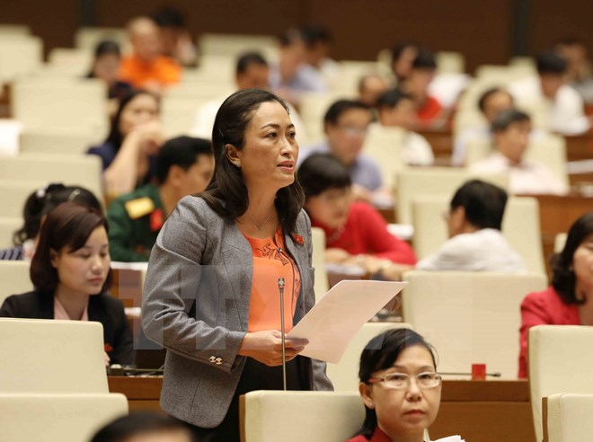 Đại biểu Quốc hội tỉnh Bạc Liêu Trần Thị Hoa Ry phát biểu ý kiến. (Ảnh: Phương Hoa/TTXVN)