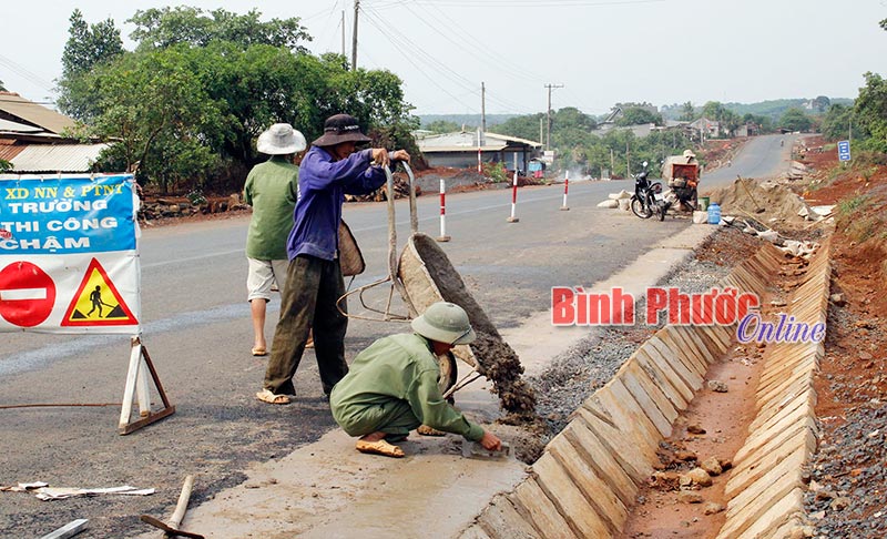 Thi công rãnh thoát nước quốc lộ 14 đoạn qua xã Thọ Sơn (Bù Đăng) - Ảnh: S.H