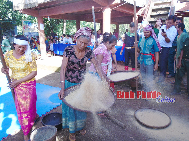 Đồng bào Khơ me ở Sóc Lớn hào hứng thi giã gạo