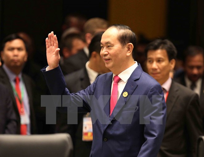 Chủ tịch nước Trần Đại Quang đến dự phiên họp. (Nguồn: TTXVN)