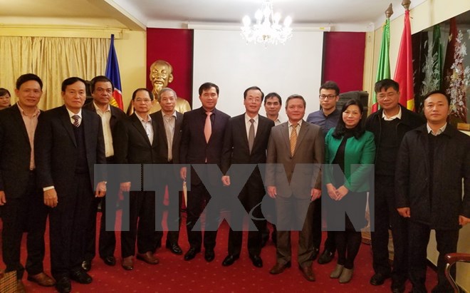 Phóng viên tại Algiers cho biết, thay mặt Đại sứ quán và toàn thể cán bộ, công nhân, viên chức người Việt đang sinh sống và làm việc ở Algeria, Đại sứ Phạm Quốc Trụ đã báo cáo với Đoàn công tác về tình hình công tác của Đại sứ quán, các cơ quan bên cạnh cũng như người lao động Việt Nam tại Algeria.