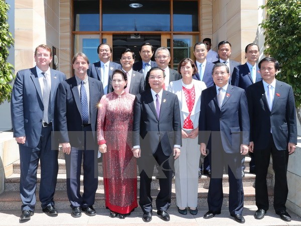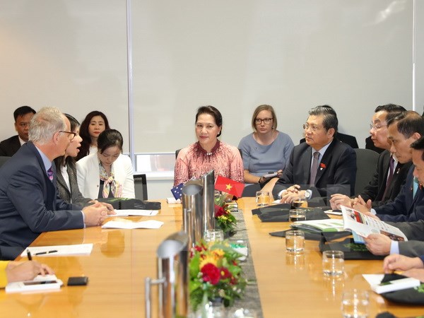 Chủ tịch Quốc hội Nguyễn Thị Kim Ngân với lãnh đạo Bộ Công nghệ và Khoa học sáng tạo Australia và Tổ chức nghiên cứu khoa học và công nghệ liên bang Australia (CSIRO). (Ảnh: Trọng Đức/TTXVN)