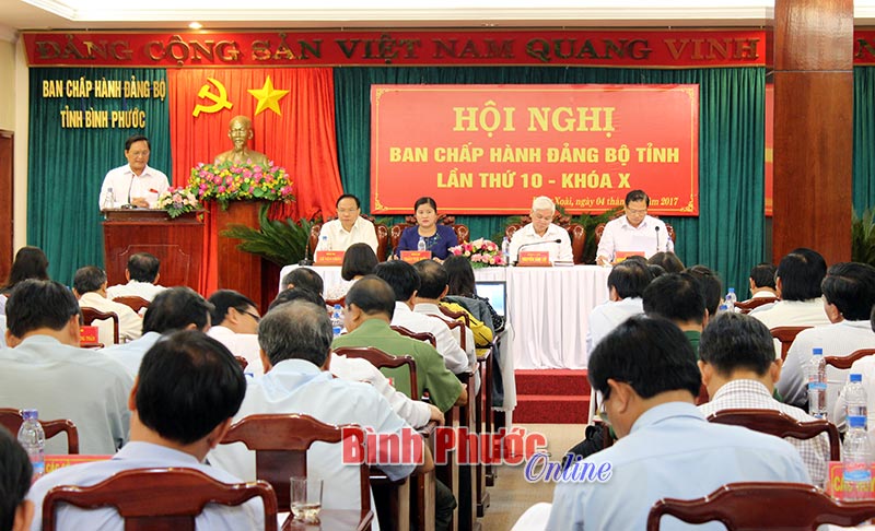 BP - Ngày 4-12, Tỉnh ủy tổ chức hội nghị Ban Chấp hành Đảng bộ tỉnh lần thứ 10, khóa X, nhằm đánh giá tình hình thực hiện nghị quyết năm 2017 và đề ra phương hướng, nhiệm vụ năm 2018; báo cáo tổng kết công tác kiểm tra, giám sát năm 2017 và chương trình kiểm tra, giám sát năm 2018; báo cáo tình hình thực hiện quy chế làm việc và chương trình làm việc năm 2018 của Ban Chấp hành Đảng bộ tỉnh; dự thảo kế hoạch thực hiện các nghị quyết số 18, 19-NQ/TW của Ban Chấp hành Trung ương Đảng, khóa XII về tổ chức bộ máy chính quyền tinh gọn, hoạt động hiệu lực, hiệu quả.