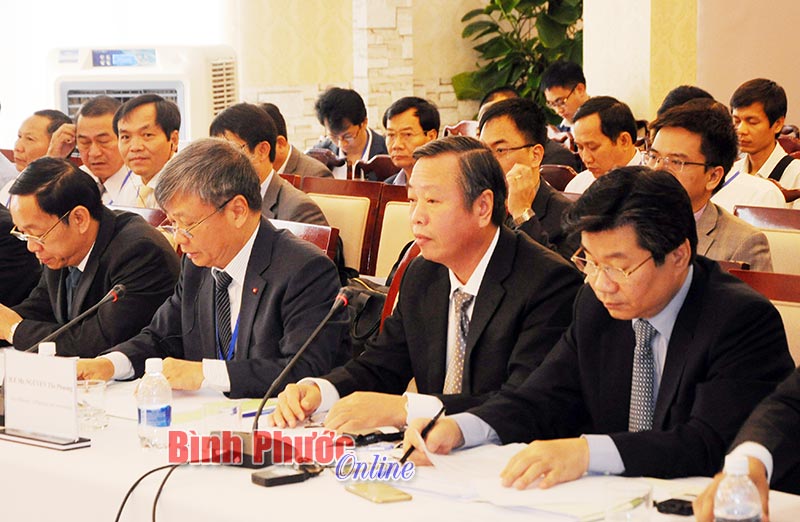 Hội nghị đang thảo luận chương trình nghị sự của Hội nghị Ủy ban điều phối chung lần thứ 11 khu vực tam giác phát triển Campuchia - Lào - Việt Nam