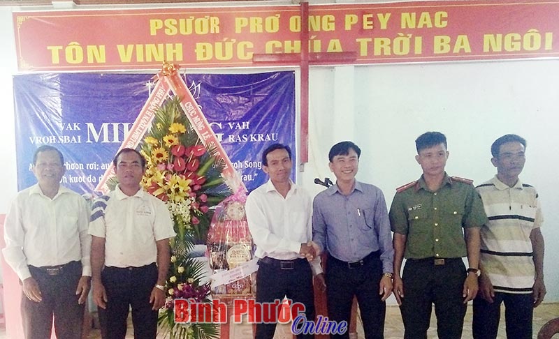 Lãnh đạo huyện Đồng Phú tặng hoa chúc mừng chi hội Tin lành Dak Drêng (xã Đồng Tiến) nhân dịp Giáng sinh 2017