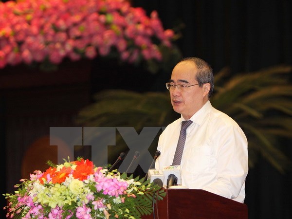 Bí thư Thành ủy Thành phố Hồ Chí Minh Nguyễn Thiện Nhân phát biểu tại hội nghị