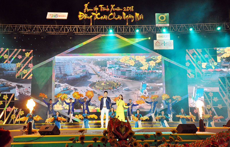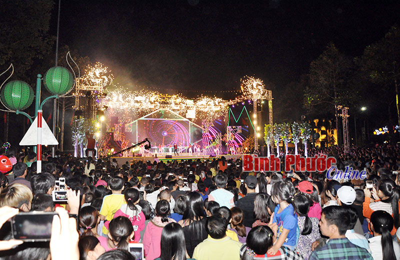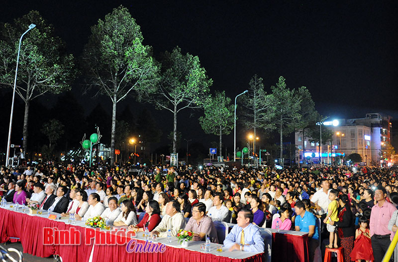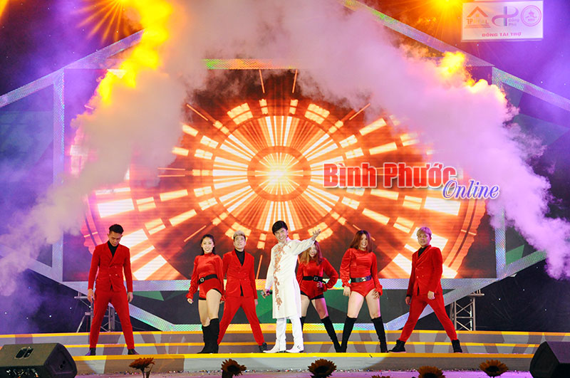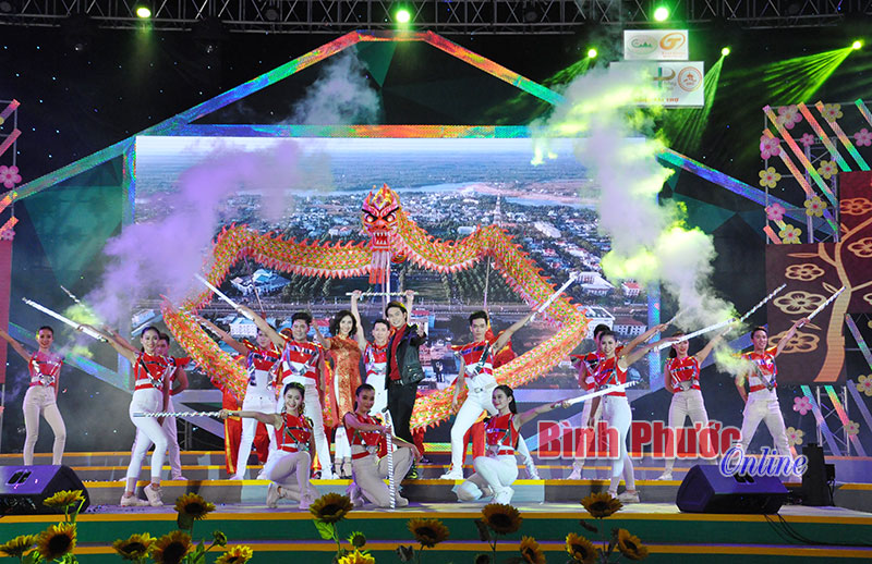 Chương trình nghệ thuật với những ca khúc đi cùng năm tháng, ca ngợi Đảng, ca ngợi Bác Hồ, quê hương, đất nước, mùa xuân do các ca sĩ, nghệ sĩ nổi tiếng như Phi Nhung, Đan Trường… thể hiện. Các ca khúc Sắc hương Đồng Xoài, Đồng Xoài chào ngày mới, Gió mùa xuân tới, Nắng có còn xuân… với âm hưởng vui tươi, ca ngợi Bình Phước và đất nước vào xuân cùng với chặng đường vươn lên thành phố trẻ Đồng Xoài đã làm cho đêm nghệ thuật rất cuốn hút người xem.