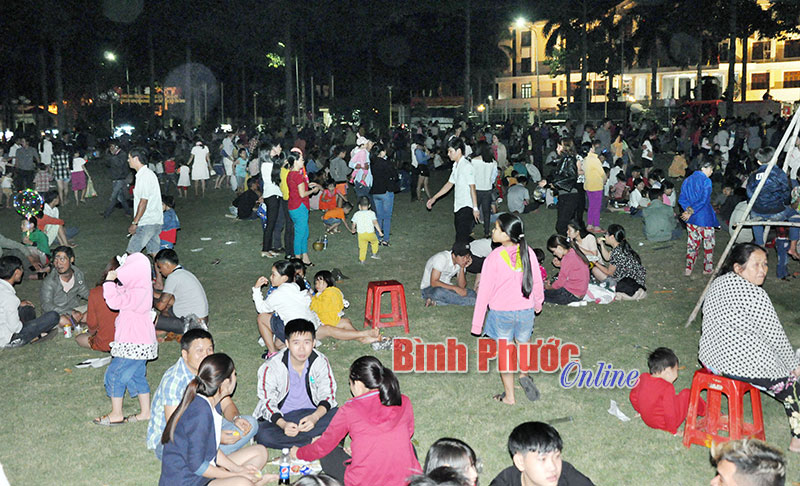 Màn bắn pháo bông tỏa sáng trên bầu trời thị xã Đồng Xoài