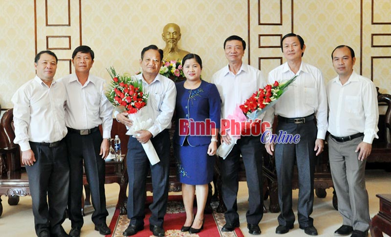 Lãnh đạo tỉnh chụp hình lưu niệm với các đồng chí: Nguyễn Tân Xuân, Nguyễn Hoàng Hùng tại lễ trao quyết định