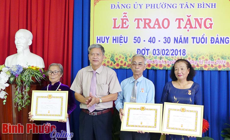 Theo đó, đảng viên được trao tặng Huy hiệu 70 năm tuổi đảng là đồng chí Giang Thái Sơn, sinh hoạt tại Đảng bộ phường Tân Bình; 1 đồng chí 65 năm tuổi đảng, 1 đồng chí 55 năm tuổi đảng, 8 đồng chí 50 năm tuổi đảng, 4 đồng chí 45 năm tuổi đảng, 2 đồng chí 40 năm tuổi đảng và 7 đồng chí 30 năm tuổi đảng.