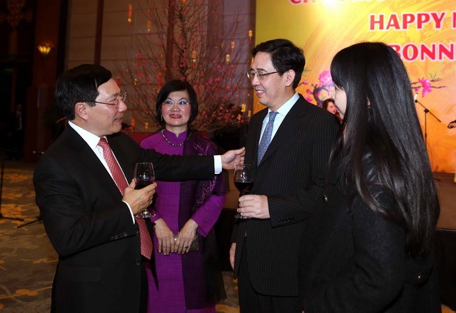 Phát biểu tại buổi lễ, Phó Thủ tướng, Bộ trưởng Ngoại giao Phạm Bình Minh hoan nghênh sự có mặt của đại diện các phái đoàn ngoại giao và chúc các đại biểu quốc tế đón Tết đầm ấm sum vầy, hạnh phúc khi mùa xuân sắp đến gần.
