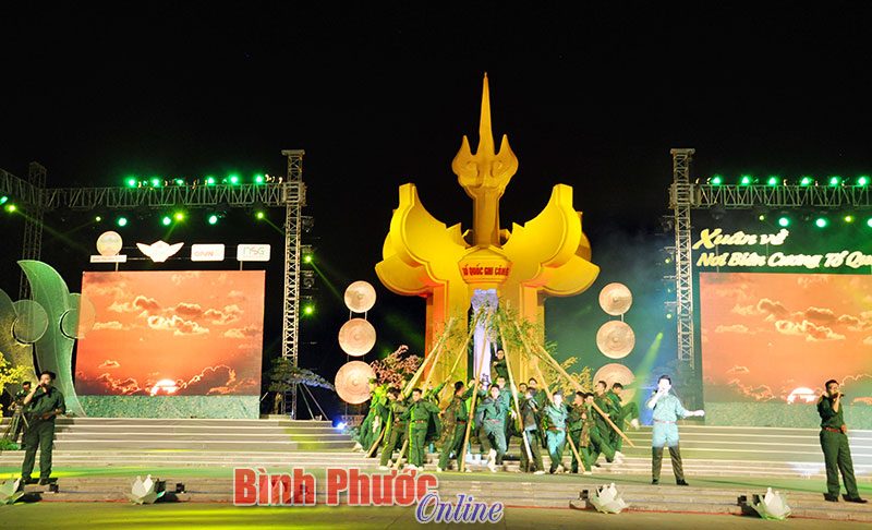 Chương trình nghệ thuật “Xuân về nơi biên cương Tổ quốc” nằm trong chuỗi 250 hoạt động “Tết quân - dân” hưởng ứng chương trình “Xuân biên cương - Tết biển đảo” của Tổng cục Chính trị phát động. Đêm nghệ thuật diễn ra với 15 ca khúc ca ngợi tình yêu quê hương, đất nước, ca ngợi Đảng, Bác Hồ kính yêu. Một số ca khúc như: Xuân chiến khu, Bóng cây Kơnia, Lá đỏ, Chào anh giải phóng quân… đã thể hiện tinh thần lạc quan của những con người trên vùng đất thép cũng như tình yêu đôi lứa hòa vào tình yêu quê hương đất nước.
