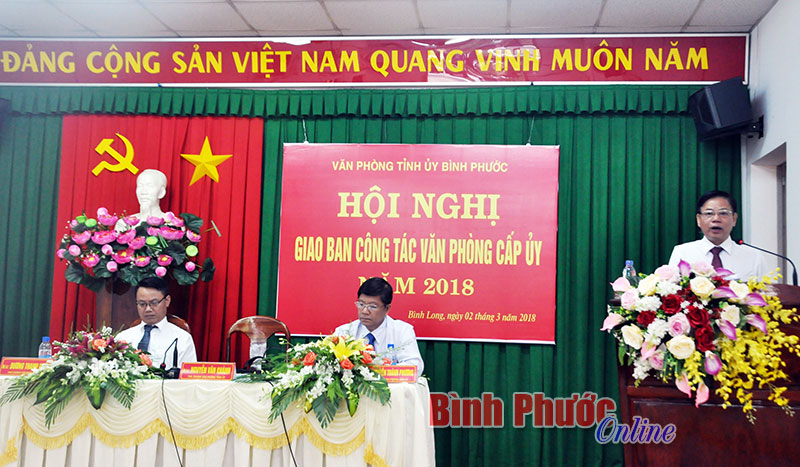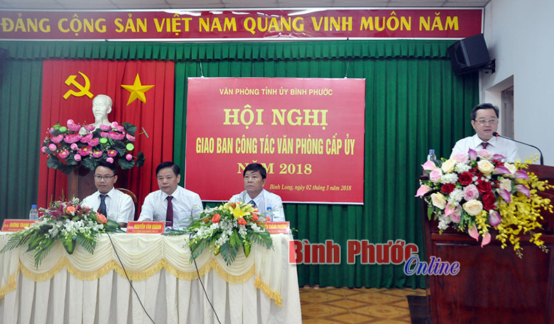 Về những nhiệm vụ trọng tâm trong thời gian tới, đồng chí Nguyễn Văn Khánh, Chánh văn phòng Tỉnh ủy nhấn mạnh: Năm 2018, với phương châm “Đoàn kết - Đổi mới - Hành động”, Văn phòng Tỉnh ủy và các huyện, thị ủy, đảng ủy trực thuộc cần xây dựng phương hướng, nhiệm vụ thành kế hoạch và có những giải pháp thực hiện cụ thể để tham mưu tốt nhất phục vụ cho sự lãnh đạo của cấp ủy.