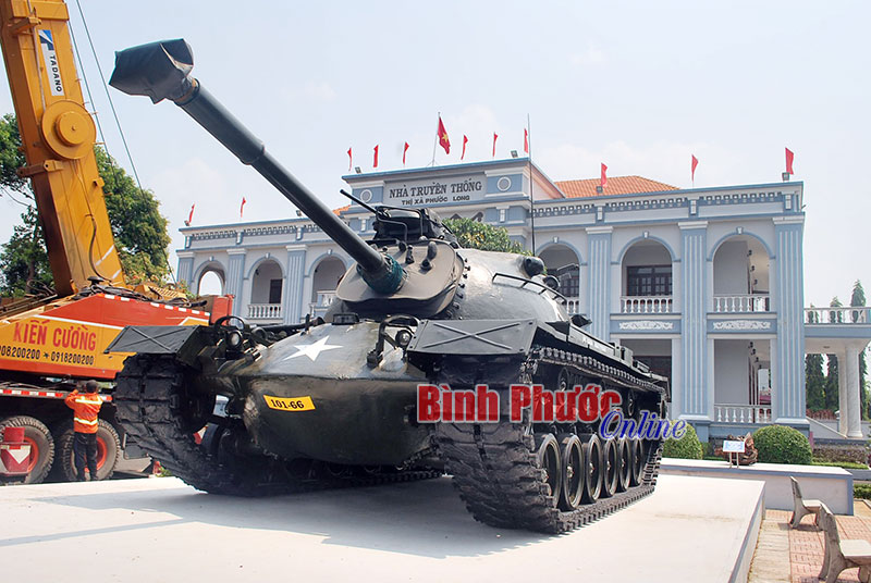 Xe tăng M48 số hiệu 101-66 trưng bày tại Nhà truyền thống thị xã Phước Long