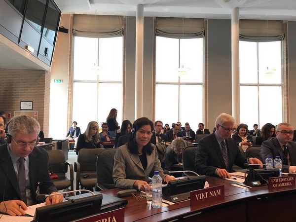 Đại sứ Ngô Thị Hòa tham dự và phát biểu tại kỳ họp Hội đồng chấp hành OPCW. (Ảnh do Đại sứ quán Việt Nam tại Hà Lan cung cấp)
