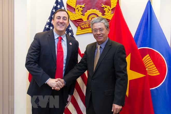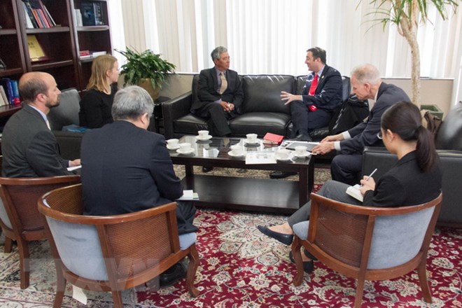 Đại sứ Phạm Quang Vinh tiếp Phó Chủ tịch Hội Chữ thập Đỏ Hoa Kỳ Jono Anzalone.