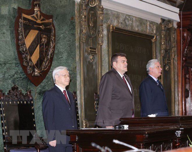 Tổng Bí thư Nguyễn Phú Trọng dự Lễ trao bằng Tiến sỹ Danh dự khoa học Chính trị của Trường Đại học Tổng hợp La Habana