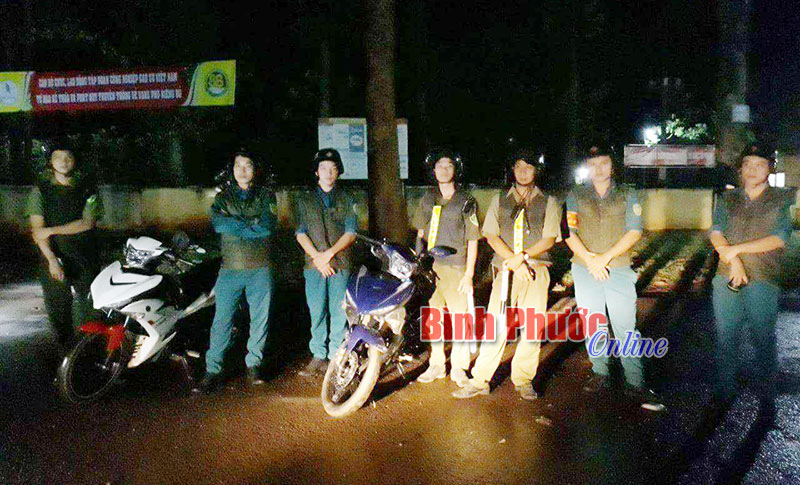 Công an xã Thuận Phú (Đồng Phú) phối hợp Công an xã Tân Hưng (Hớn Quản) tuần tra ở địa bàn giáp ranh - Ảnh: C.Nhung