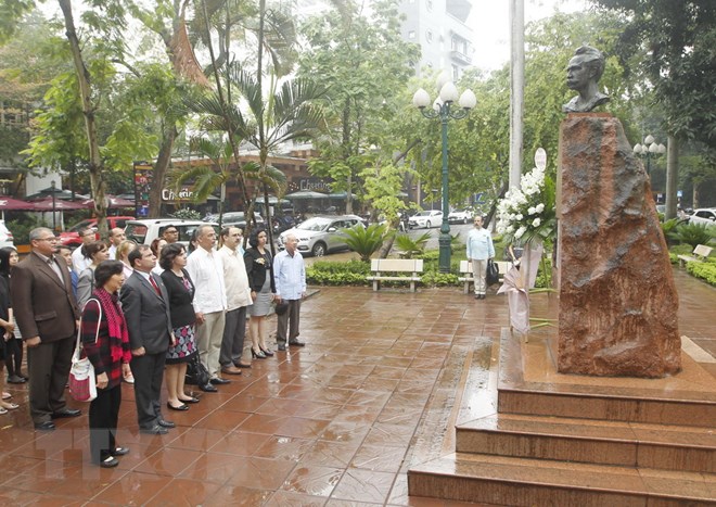 Đoàn đại biểu ICAP đặt vòng hoa tại Tượng đài Anh hùng dân tộc Cuba José Martí ở vườn hoa Tao Đàn, Hà Nội