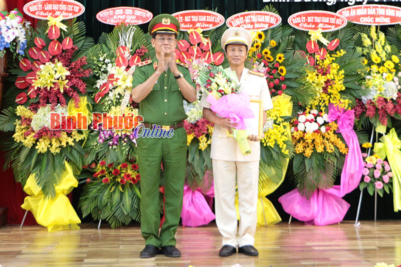 Trung tướng Nguyễn Ngọc Bằng trao quyết định và tặng hoa Thượng tá Phùng Văn Tuyến