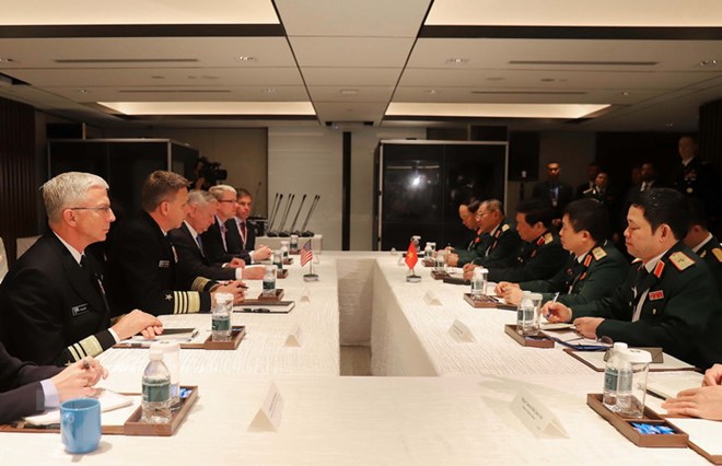 Cũng tại cuộc gặp, Bộ trưởng Quốc phòng Hoa Kỳ cảm ơn Việt Nam đã đón tàu sân bay Carl Vinson thăm Đà Nẵng vào tháng Ba vừa qua.