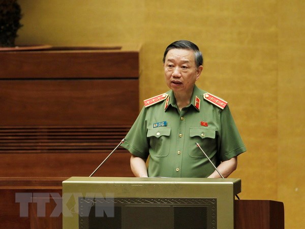 Bộ trưởng Bộ Công an Tô Lâm, thừa ủy quyền của Thủ tướng Chính phủ trình bày Tờ trình về dự án Luật Công an nhân dân (sửa đổi)