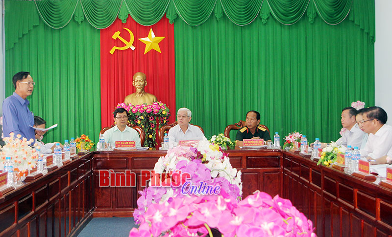 Bí thư Tỉnh ủy Nguyễn Văn Lợi nghe lãnh đạo huyện Bù Đốp báo cáo tình hình 6 tháng năm 2018