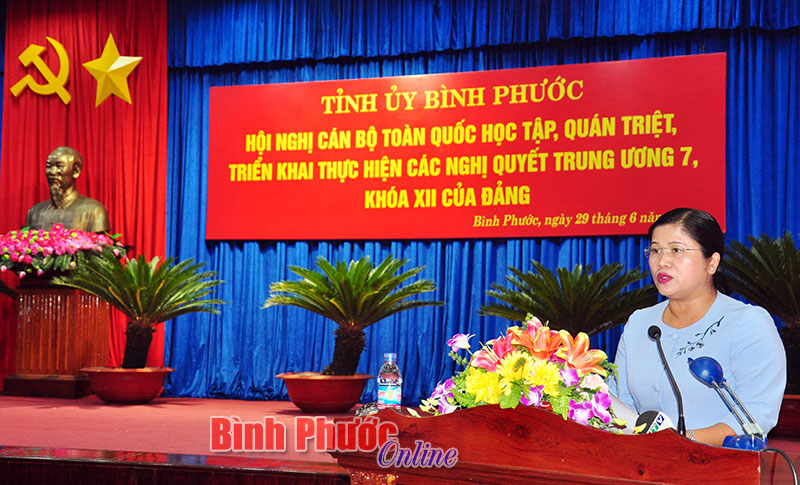 Đồng chí Trần Quốc Vượng, Ủy viên Bộ Chính trị, Thường trực Ban Bí thư chủ trì hội nghị. Tại điểm cầu Bình Phước, đồng chí Nguyễn Văn Lợi, Ủy viên Trung ương Đảng, Bí thư Tỉnh ủy, Trưởng đoàn đại biểu Quốc hội tỉnh chủ trì hội nghị với gần 3.500 cán bộ dự tại hội trường tỉnh và trực tuyến đến 11 huyện, thị.