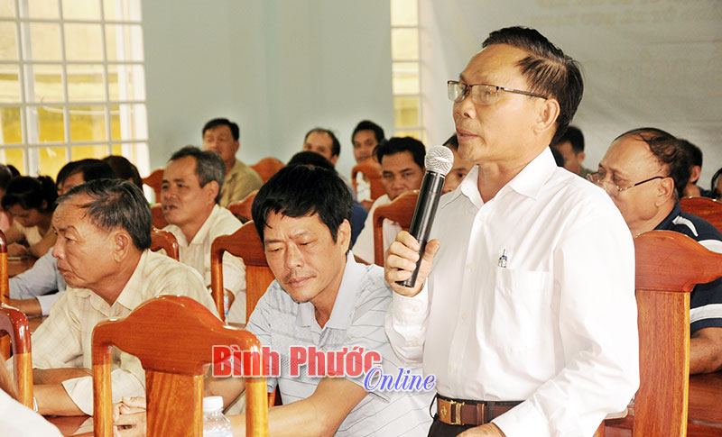 Tại hội nghị, có 7 cử tri phát biểu, kiến nghị 5 nhóm vấn đề, gồm: Quốc hội có chính sách chung đối với các hộ di dân tự do từ Campuchia về Việt Nam. Giá nông sản, đặc biệt là giá hồ tiêu, cao su giảm mạnh, kiến nghị Nhà nước có chính sách hỗ trợ. Vướng mắc, sai sót trong cấp giấy chứng nhận quyền sử dụng đất, cử tri phản ánh địa chính đo 3 lần cho 3 kết quả khác nhau, cán bộ địa chính 3 lần đưa ra 3 mức phí thu... Một số công trình giao thông, cầu đường hiện không đáp ứng được nhu cầu sản xuất, kiến nghị làm cầu qua sông Bé để rút ngắn khoảng cách từ trung tâm huyện Bù Gia Mập về trung tâm thị xã Phước Long, nâng tải trọng cầu Thác Mẹ, nhiều trạm thu phí BOT giao thông... Cấp đất và tạo việc làm cho đồng bào dân tộc thiểu số...