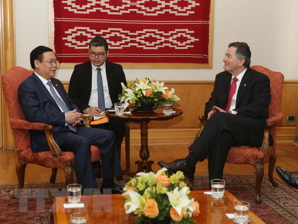 Phó Thủ tướng Chính phủ Vương Đình Huệ làm việc với Bộ trưởng Ngoại giao Chile Roberto Ampuero Espinoza