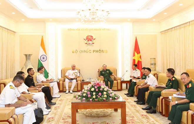 Thượng tướng Phạm Ngọc Minh, Phó Tổng Tham mưu trưởng Quân đội Nhân dân Việt Nam tiếp Phó Đô đốc Gurtej Singh Pabbay, Phó Tư lệnh Hải quân Ấn Độ sang thăm và làm việc tại Việt Nam
