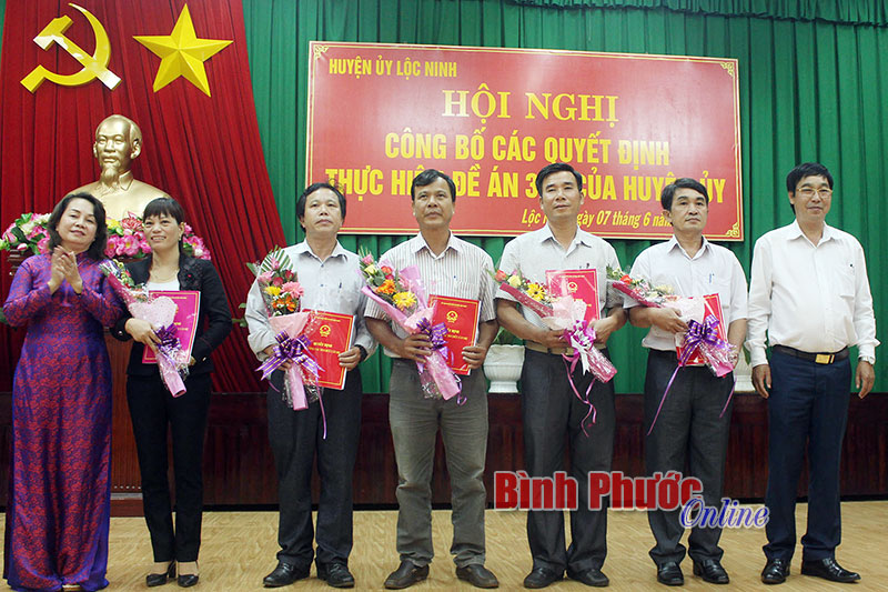 6 tháng cuối năm 2018, Huyện ủy Lộc Ninh tiếp tục thực hiện lộ trình phê duyệt đề án sắp xếp tổ chức bộ máy, thực hiện nhất thể hóa chức danh cấp xã, thị trấn và đề án sắp xếp trường học theo mô hình trường học đa cấp (giai đoạn 2018-2020).